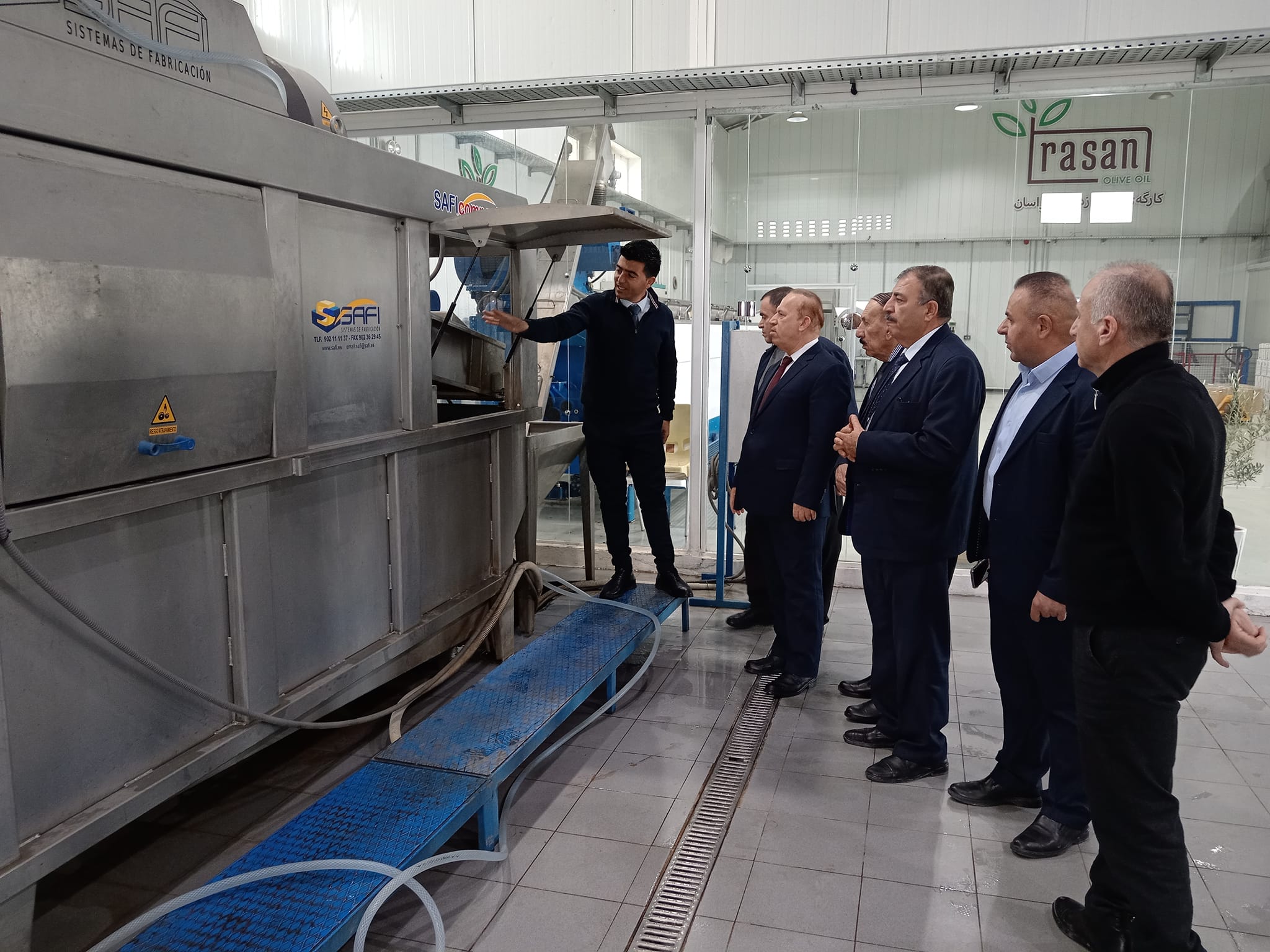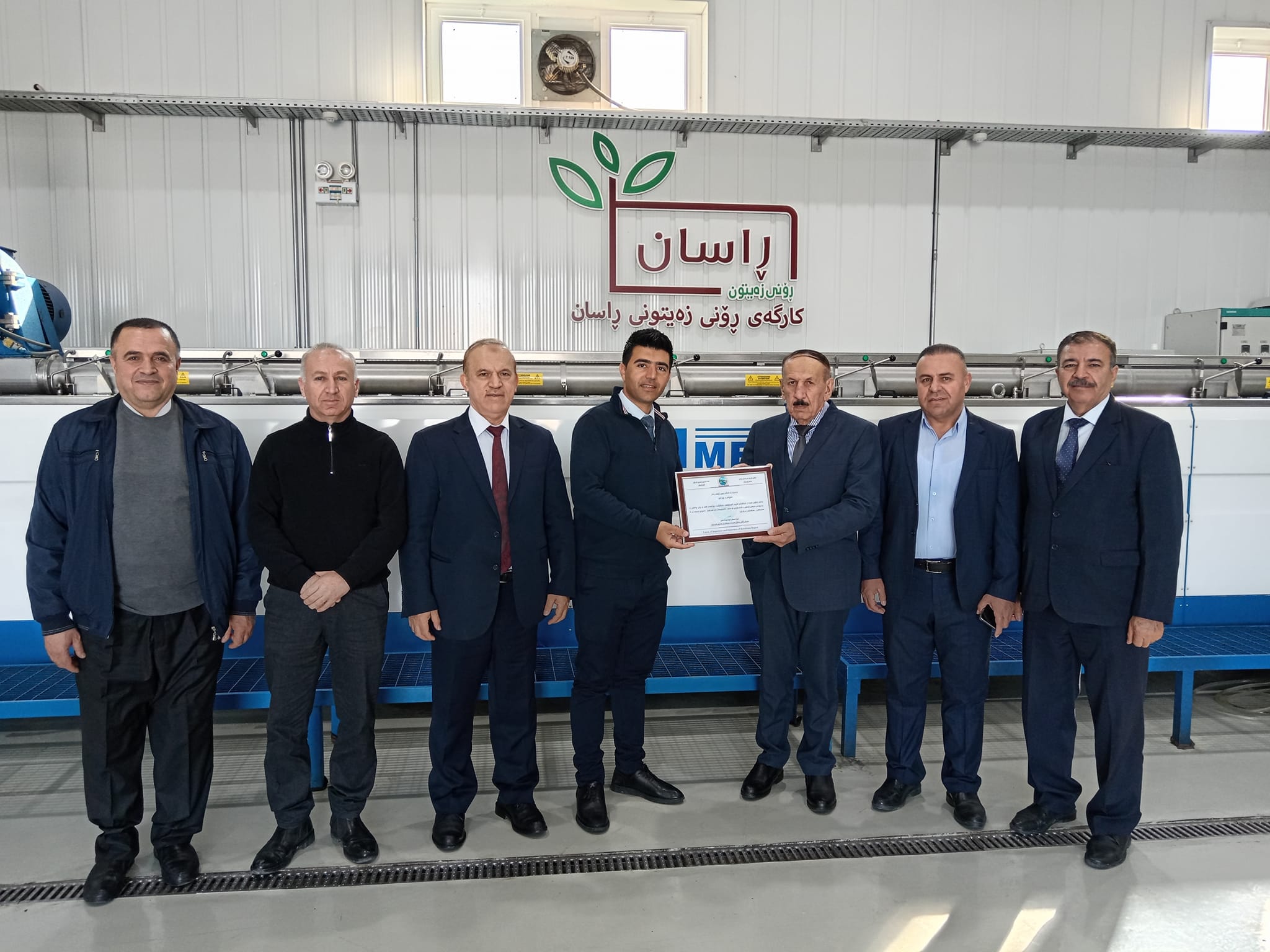 Visit of Kurdistan Regional Importers and Exporters Union to Rasan Olive Oil Factory. During their visit, they appreciated the factory's active role in developing local products.