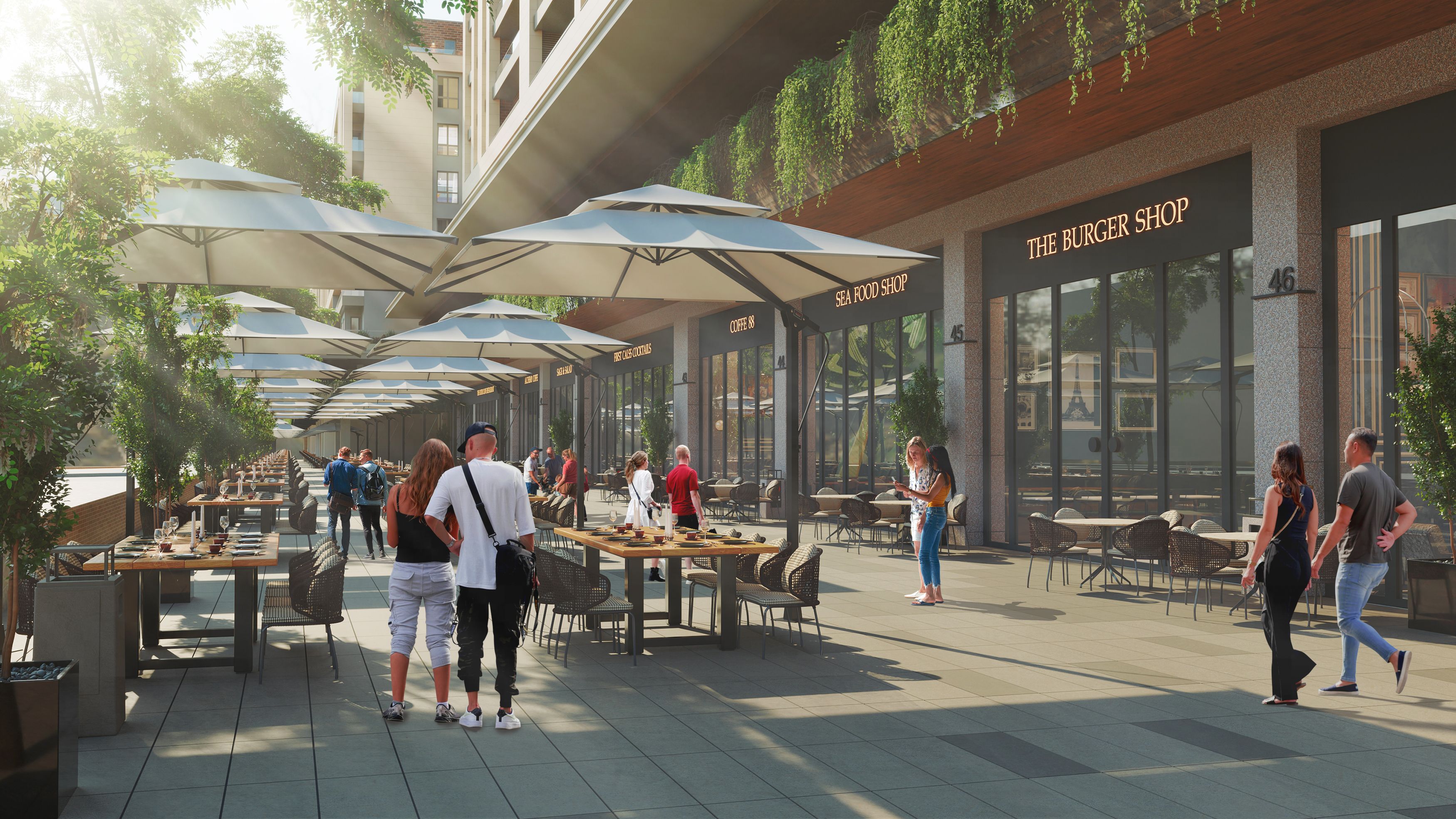 Comprehensive market facilities featuring renowned brands, pharmacies, cafes, and more, catering to all resident needs.