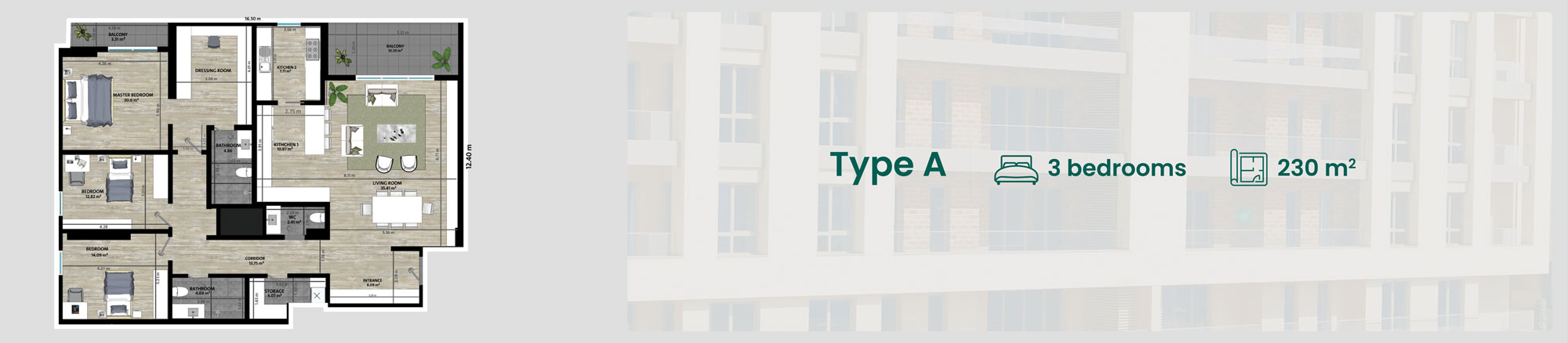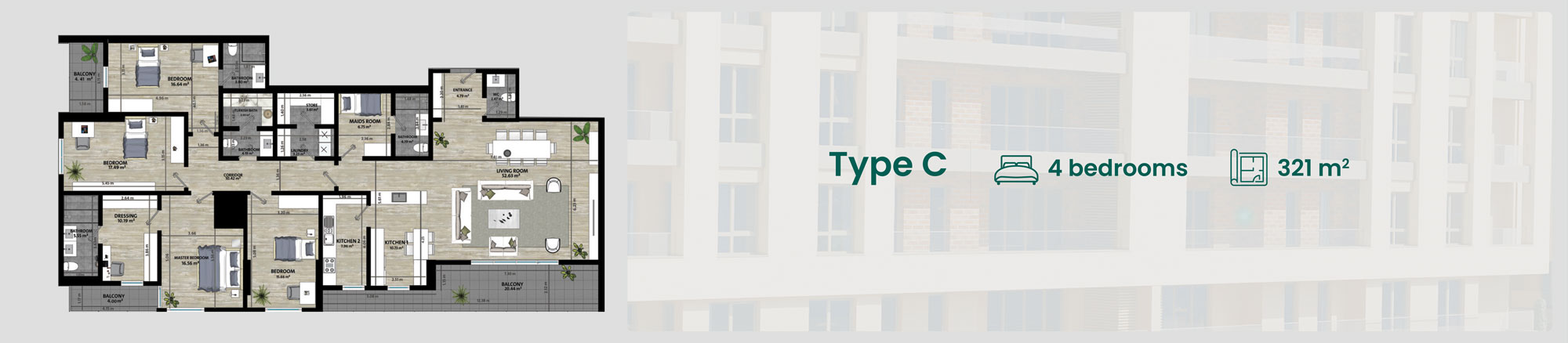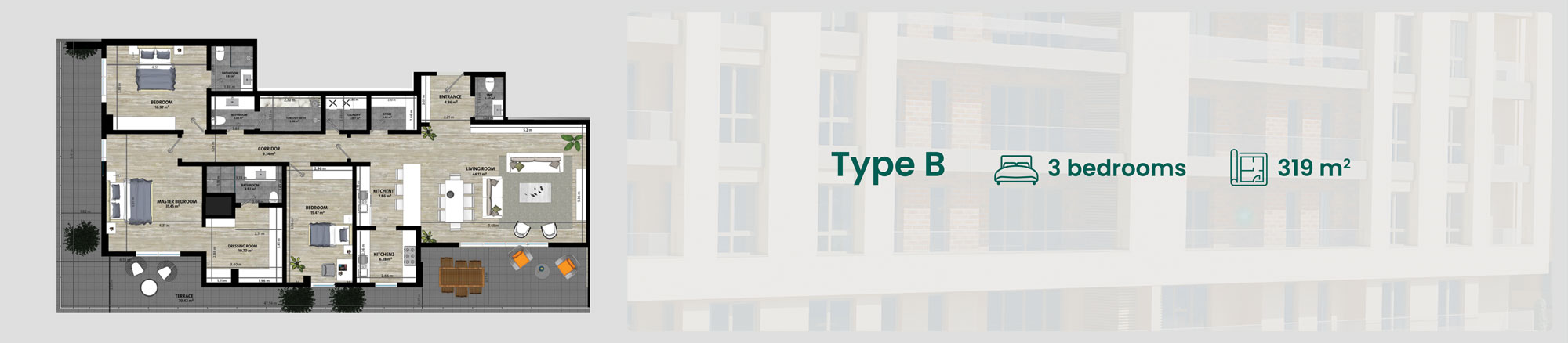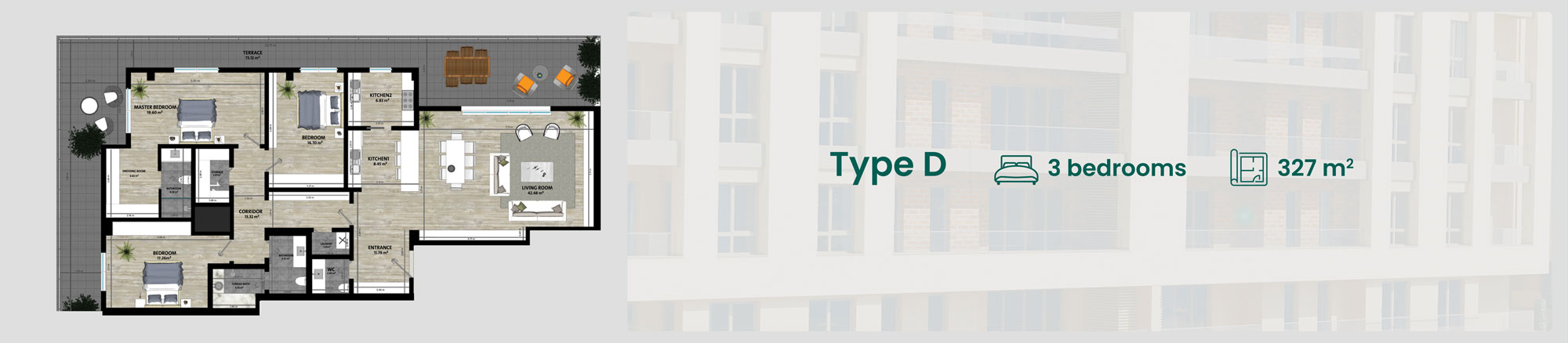 The project comprises five buildings, with each building boasting 7 floors. Within each floor, a total of five apartments are gracefully housed. the basement of each building has been thoughtfully allocated for commercial purposes, catering to the diverse needs of all residents. Within the project, a mosque will be nested too. The area of the apartments are 180 square meters, 230 square meters, and an expansive 321 square meters. The top-floor apartments feature a large terrace that offers a captivating view for its residents.