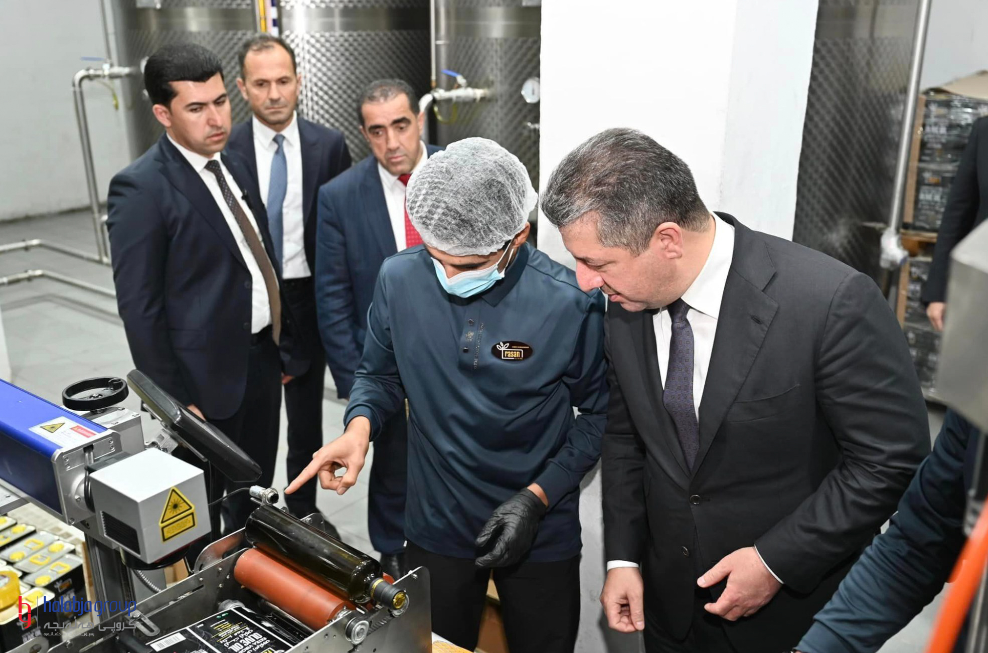 During his visit to Halabja, Prime Minister Masrour Barzani toured the Rasan Olive Oil Factory and Rasan Food Industry Society, both of which are part of the Halabja Group. He commended the significant contributions of both factories to the development of the food industry sector and domestic products in the Kurdistan Region.